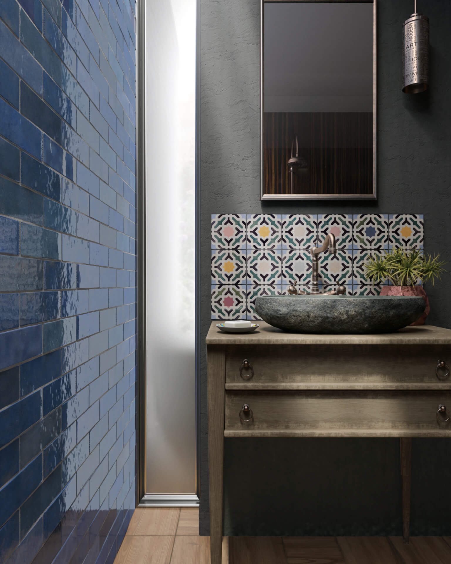 Inspired by the timeless charm of traditional Moroccan tiles and a rich palette of colours and high shade variation, Camden exudes boldness, vibrancy, and sophistication. Their subtly uneven surfaces bring character, elegance, and depth to any wall, adding a distinctive touch of style and personality.