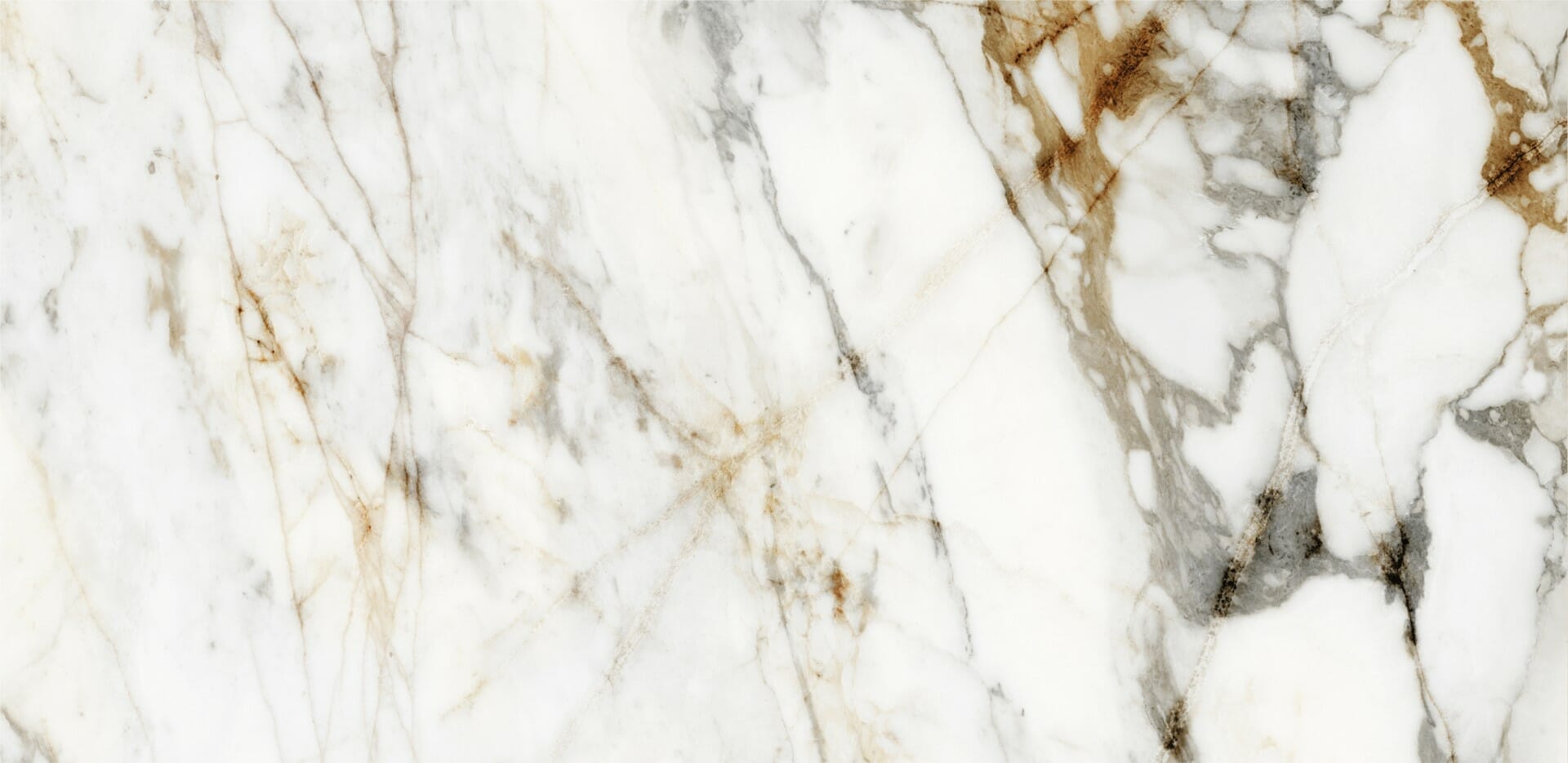 Rich warm veins of minerals running through a light base make for a striking glazed porcelain range that emulates magnificent marbles.