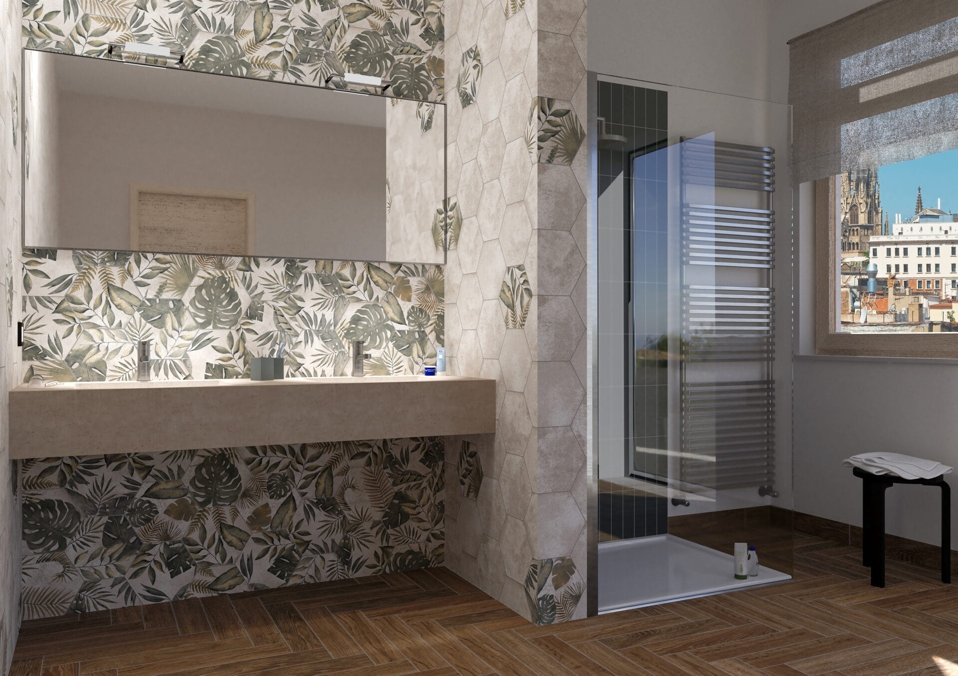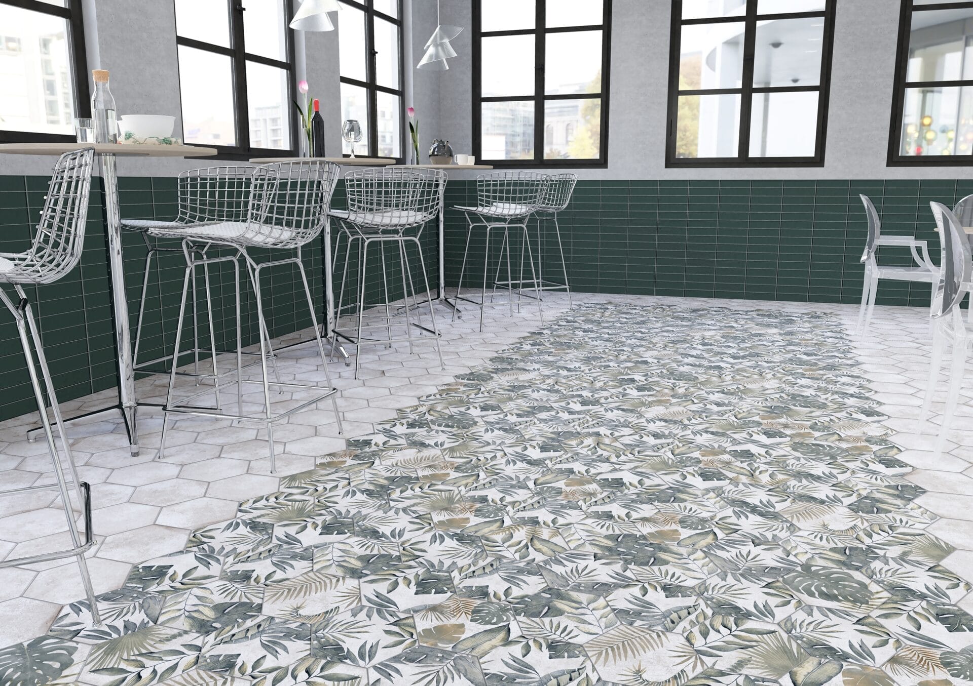 Bring the beauty of nature indoors with these stunning hexagonal tiles. Featuring a harmonious blend of soft neutrals and lush botanical prints, they create a fresh, organic ambiance perfect for modern and classic spaces alike. Elevate your bathroom or feature wall with this elegant fusion of texture and design.