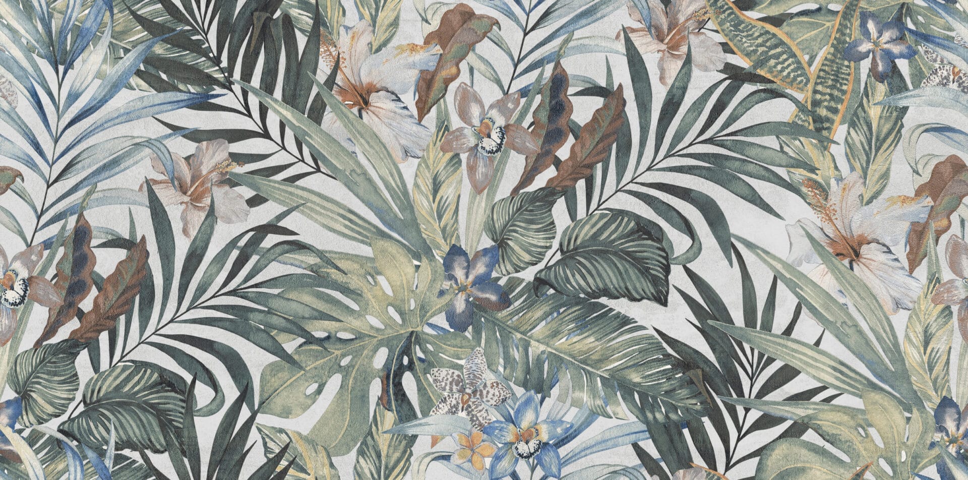 A decorated wall can turn any interior into a serene garden, soothing both body and mind. Inspired by leaves, flowers, and tropical vibes, these botanically themed surfaces capture the charm of distant landscapes, bringing the beauty of nature indoors and creating a peaceful retreat at home.