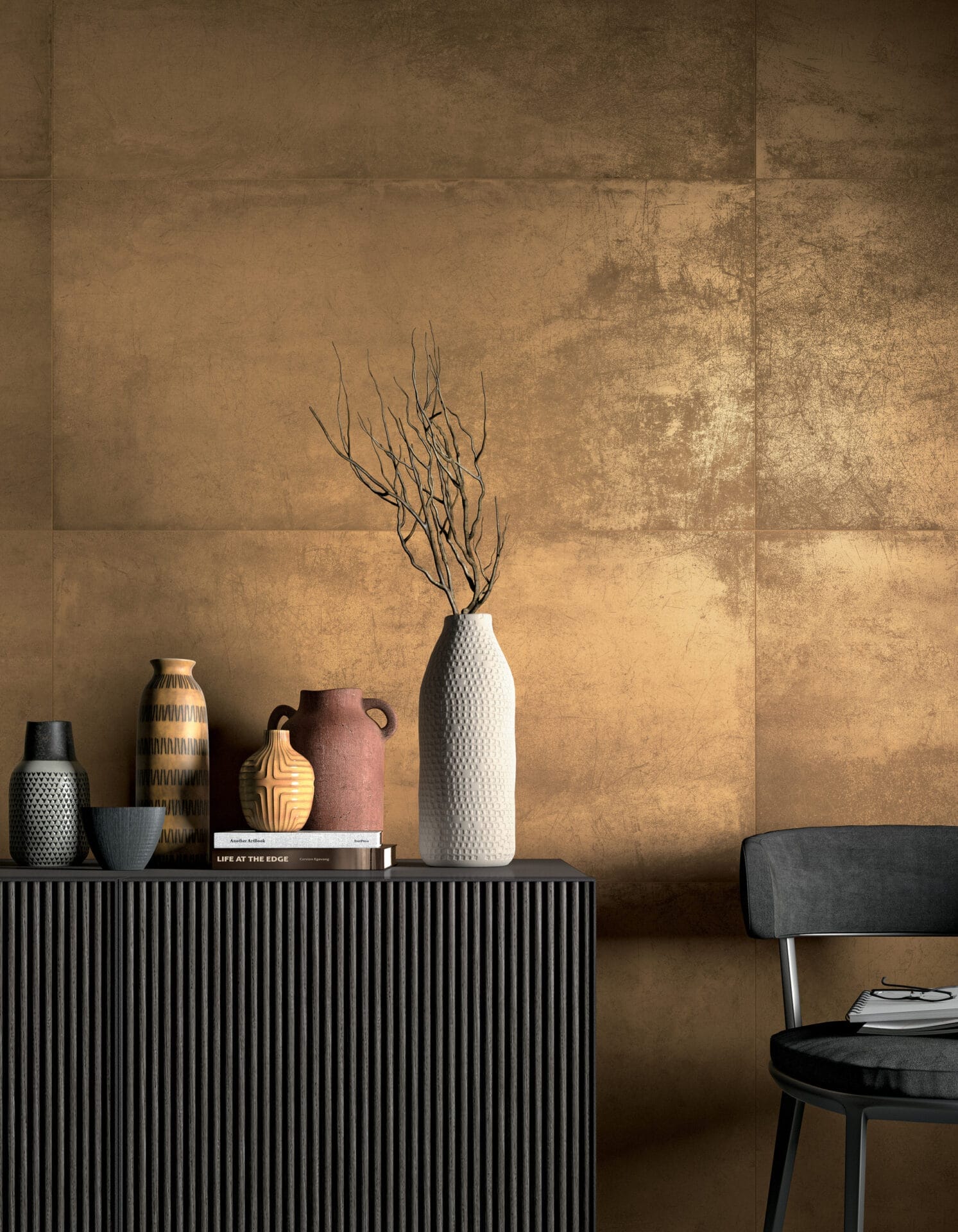Experience metal in its purest and most authentic form, where shades of grey and copper blend seamlessly with petrol blue and green, creating an atmosphere of refined elegance with a bold, unconventional twist.