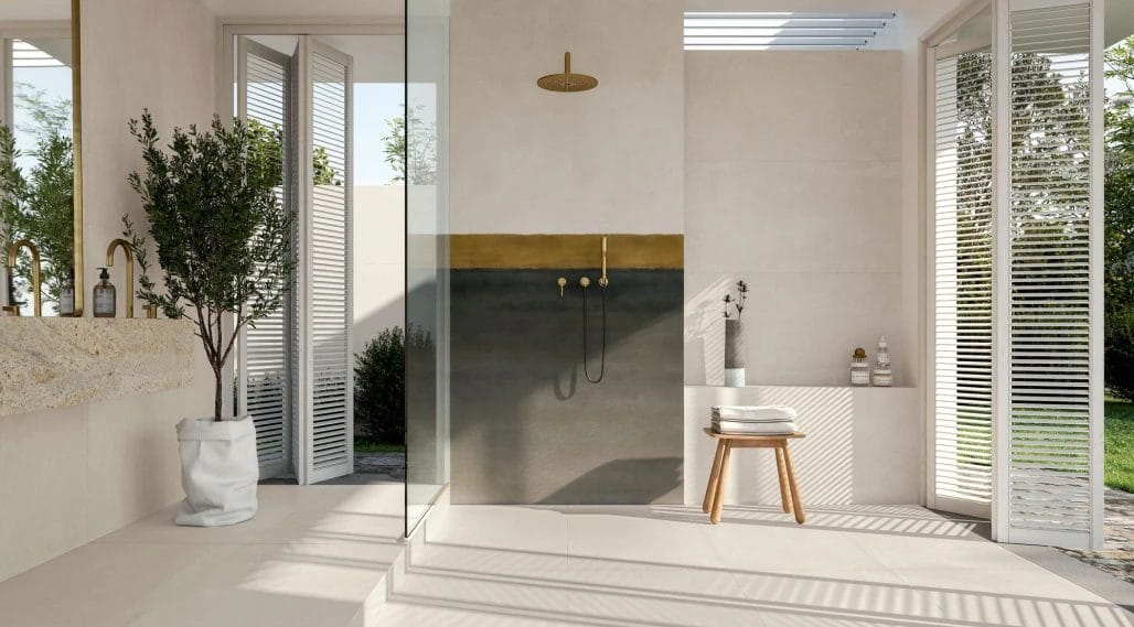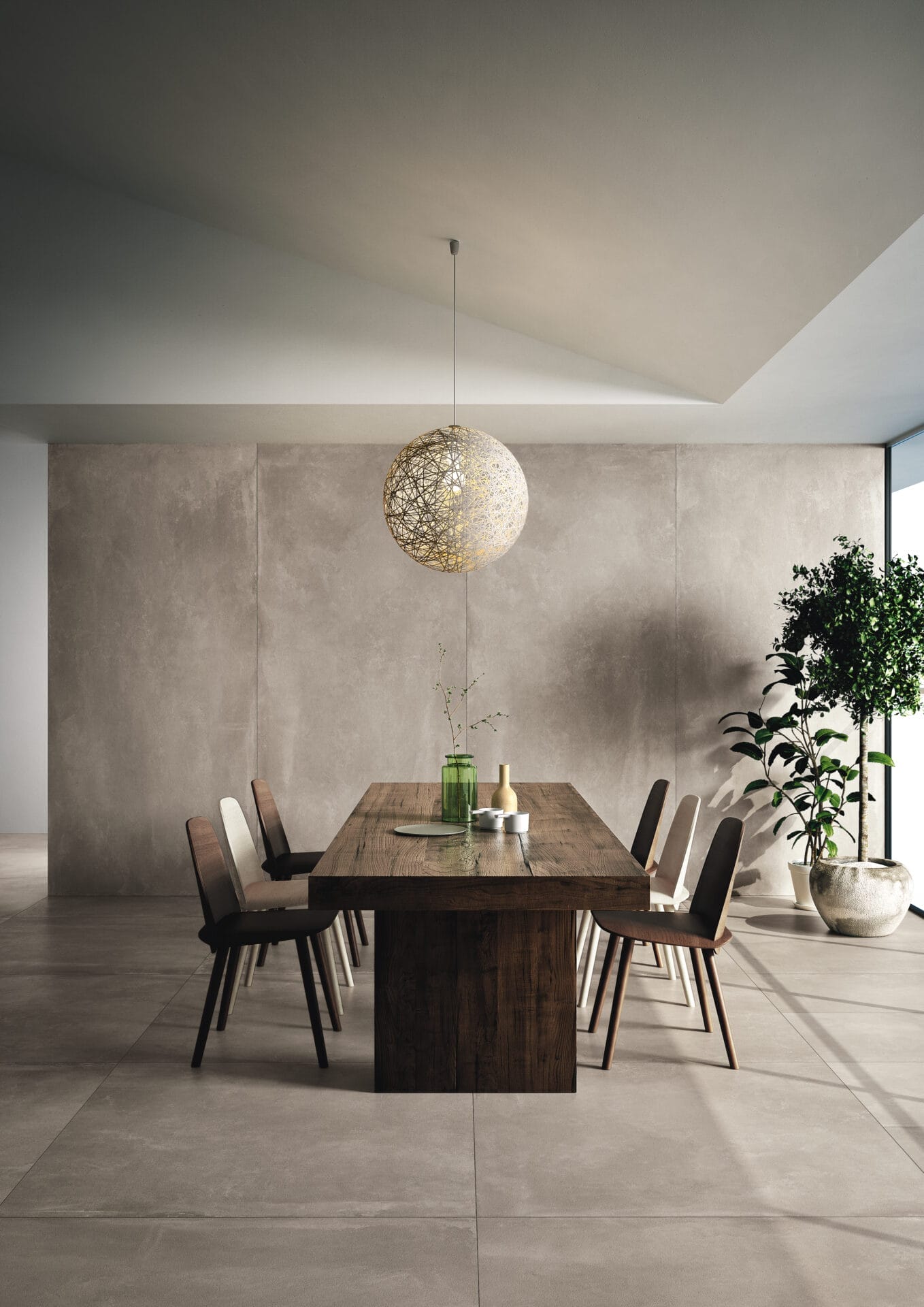 The essence of bold, abstract minimalism is softened to convey warmth, resilience, and positivity. While retaining the signature look of cement, it features gentler tones for a more inviting feel.