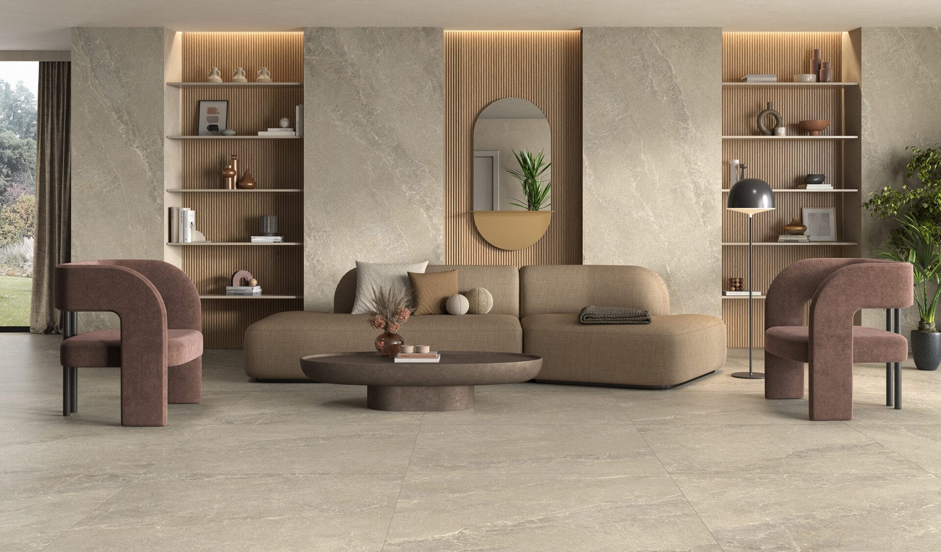 Mimics the natural beauty of stone with subtle textures and organic variations. Its timeless design suits both modern and classic spaces.