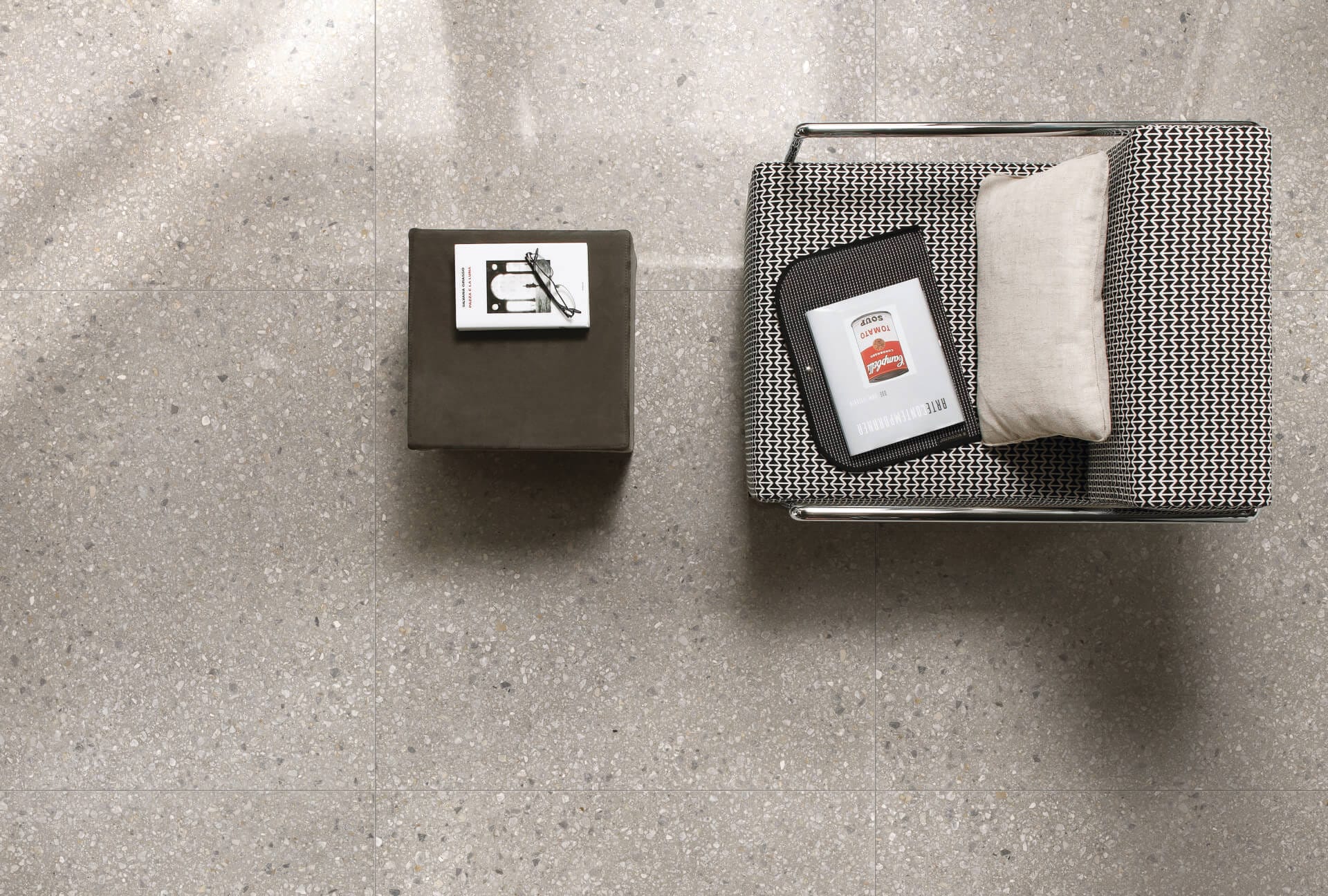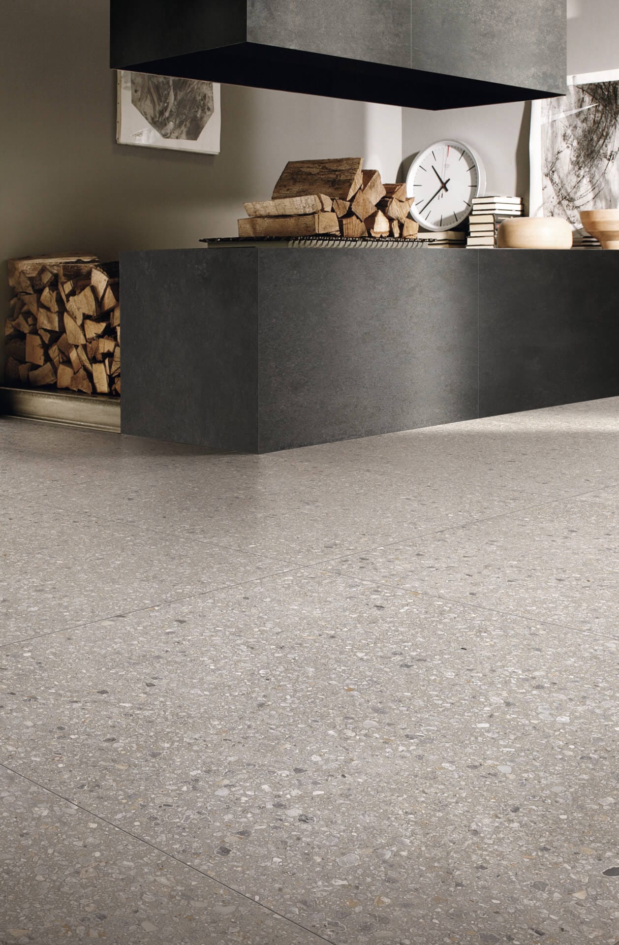 Our Terrazzo range is a combination of a concrete effect with an urban and industrial aesthetic and an original marble agglomerate effect, that blends tactile elements with regular shapes. Two seemingly very different materials work together in a unique range that promotes and encourages combinations between the surfaces and colour shades.