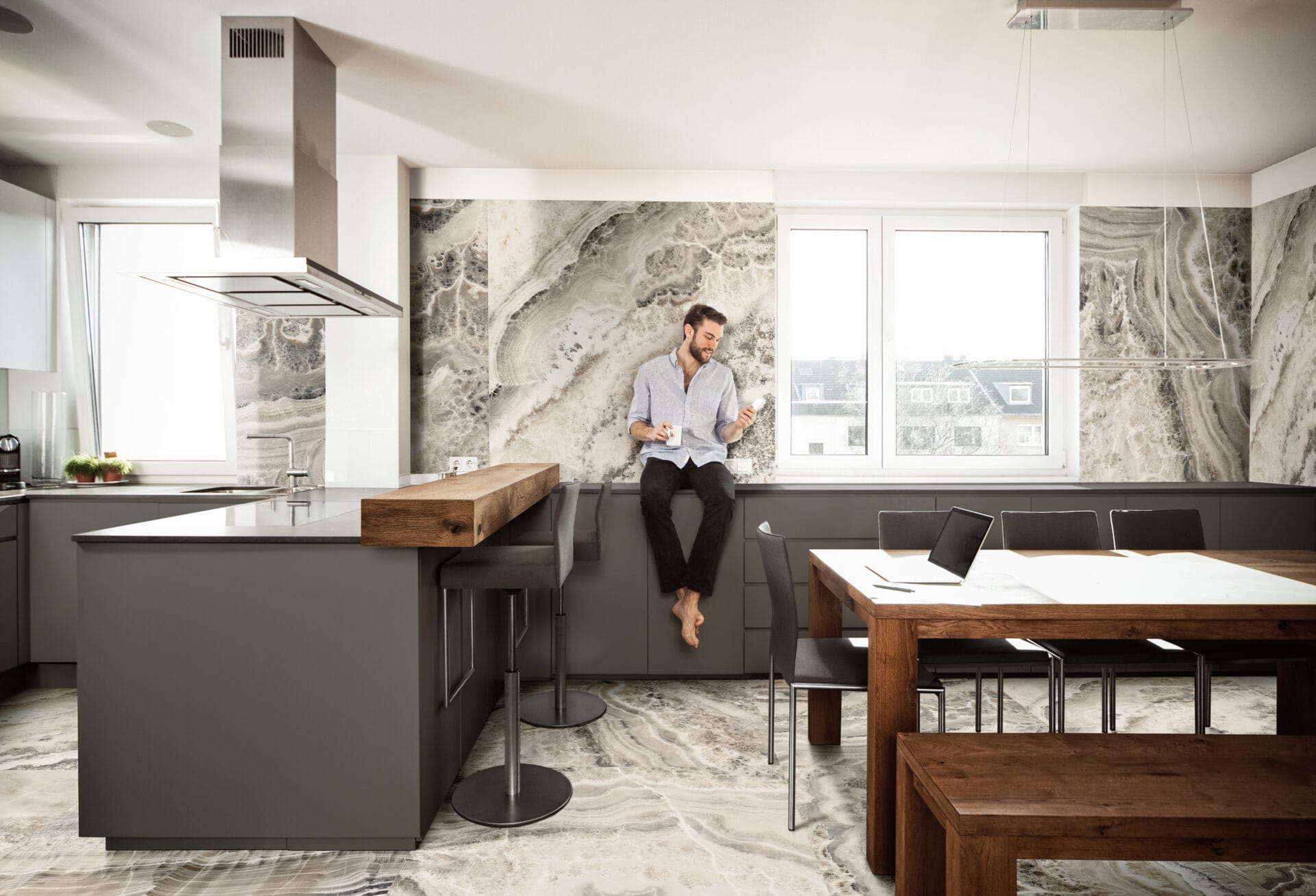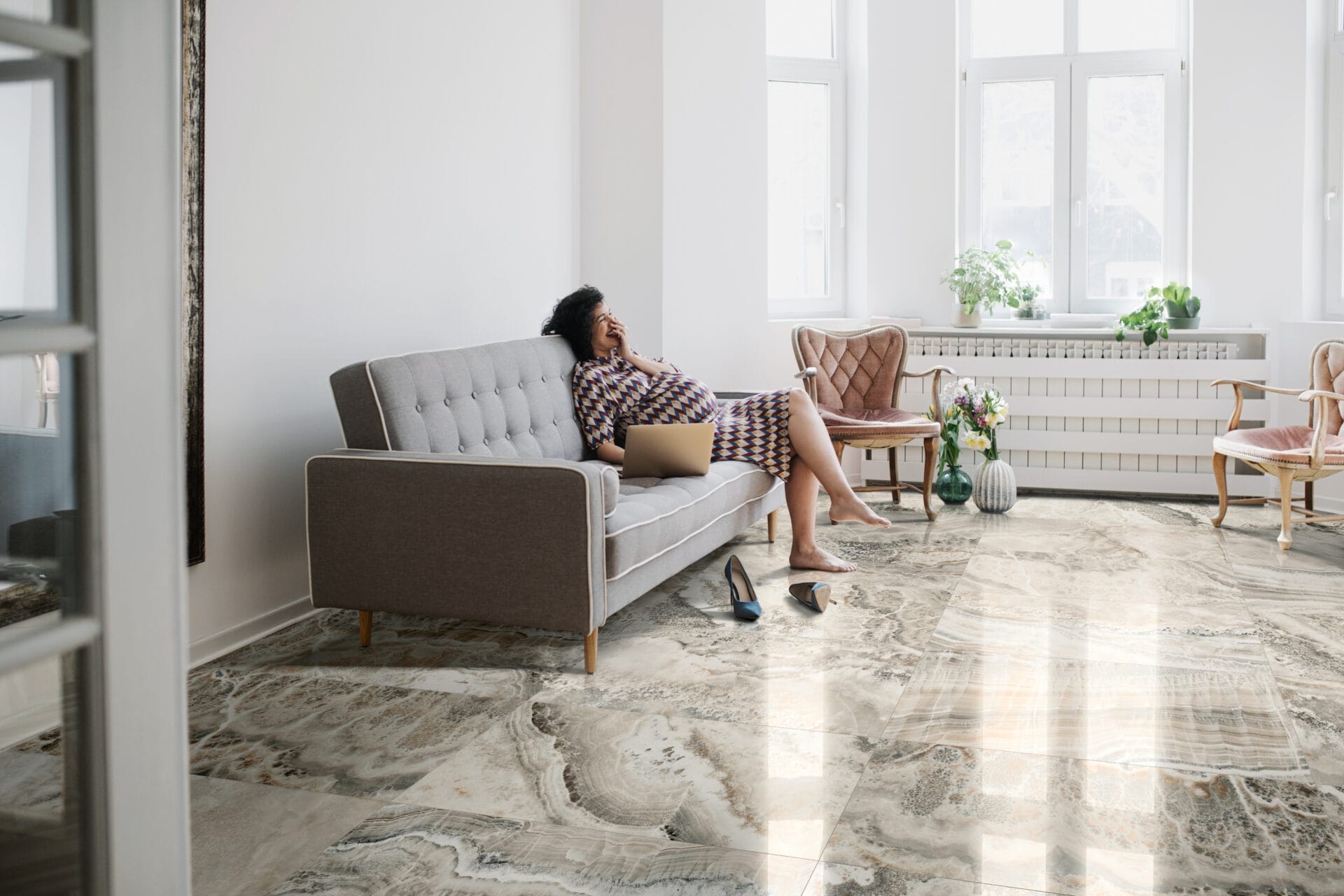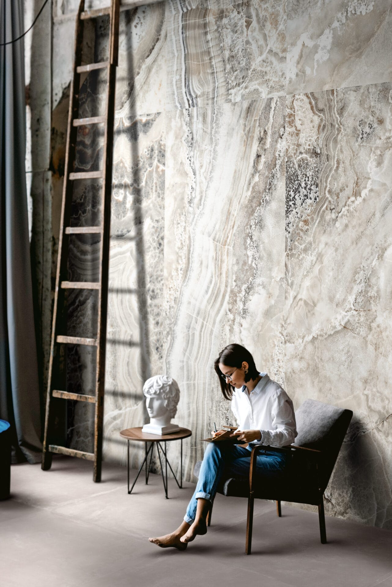 Showcasing a stunning natural stone-inspired design with swirling veins and speckled details in soft white, grey, and earthy tones. The organic flow of the patterns adds depth and elegance, making it an excellent choice for both modern and classic spaces.