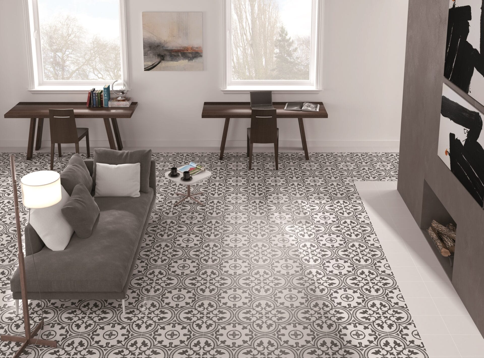Delicate geometric and floral motifs intertwine in a harmonious composition, creating a subtle yet captivating visual effect. The soft contrast between the white base and the detailed engravings adds depth and texture, making it a versatile choice for both modern and vintage-inspired spaces.