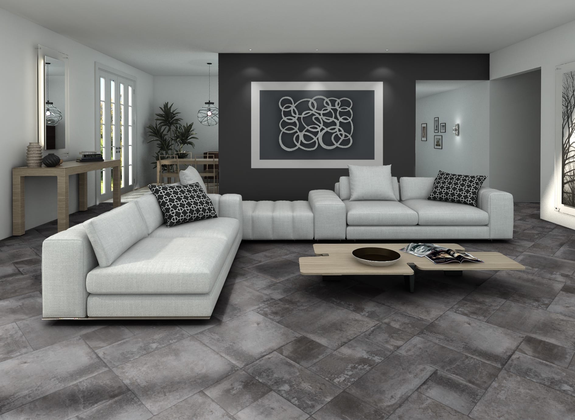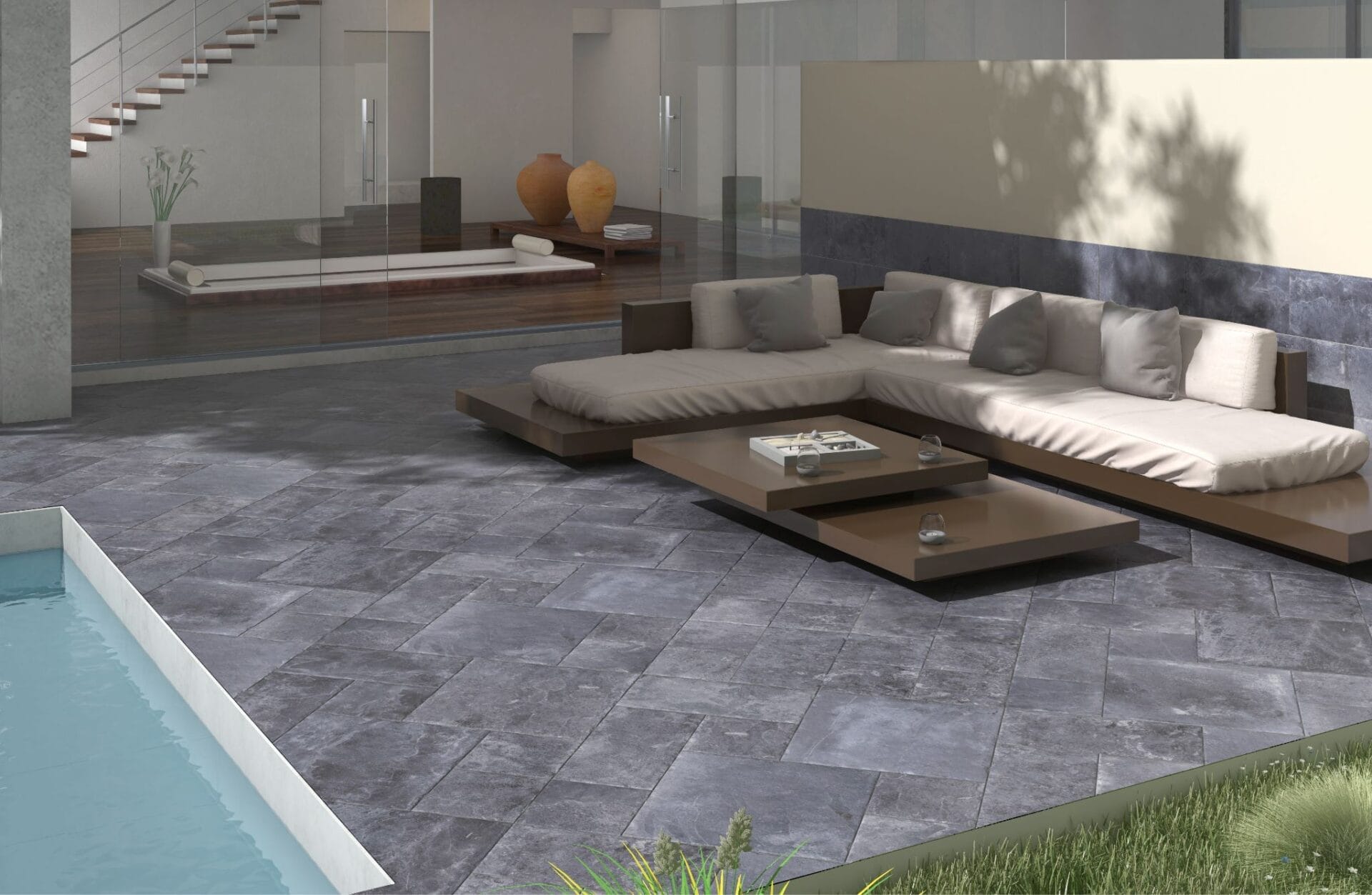 Designed for modern living, they combine the raw beauty of natural stone with the sleek appeal of industrial concrete. The rich shades, ranging from soft greys to deep charcoals, effortlessly complement any décor